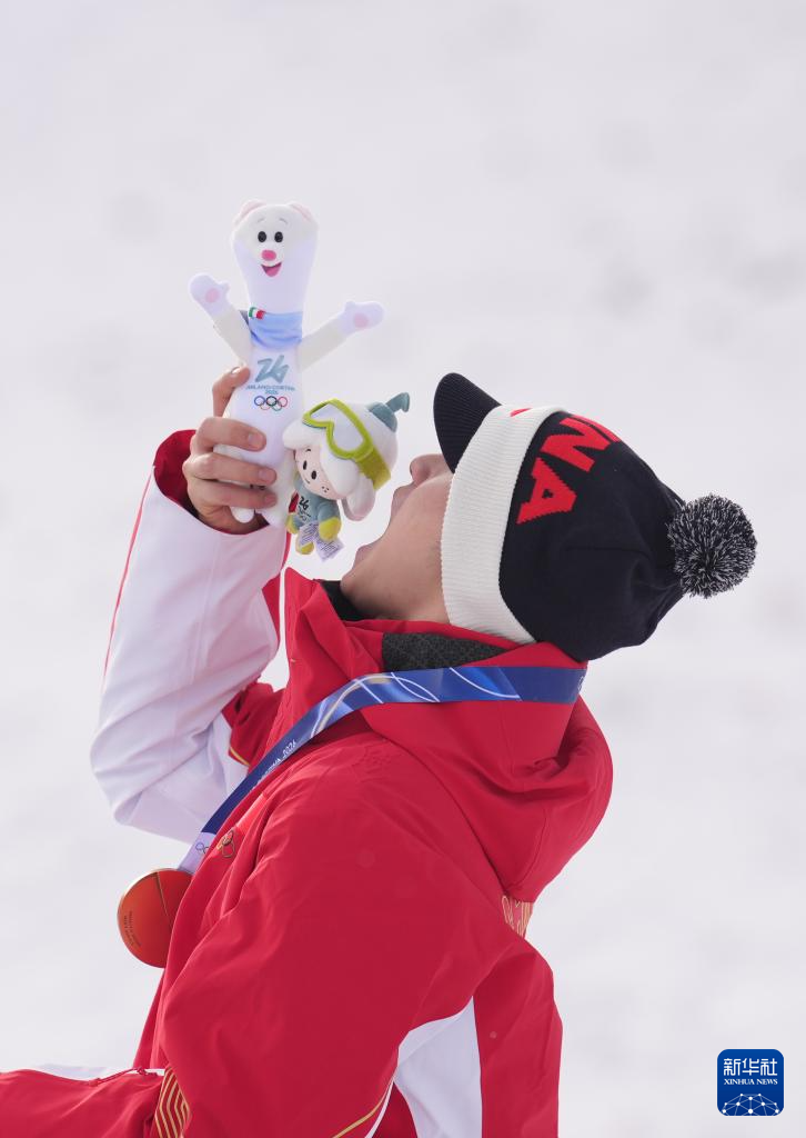 当地时间2月20日,在意大利利维尼奥举行的米兰-科尔蒂纳冬奥会自由式滑雪男子空中技巧决赛中,中国选手王心迪和李天马分获冠军和季军。