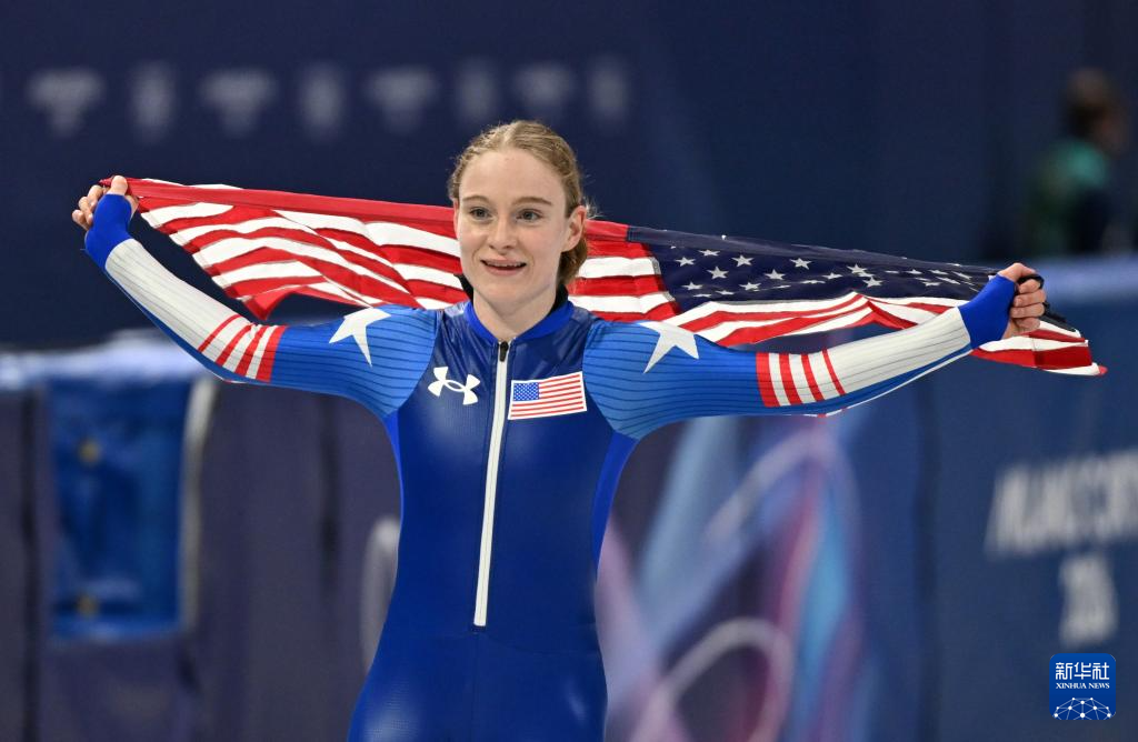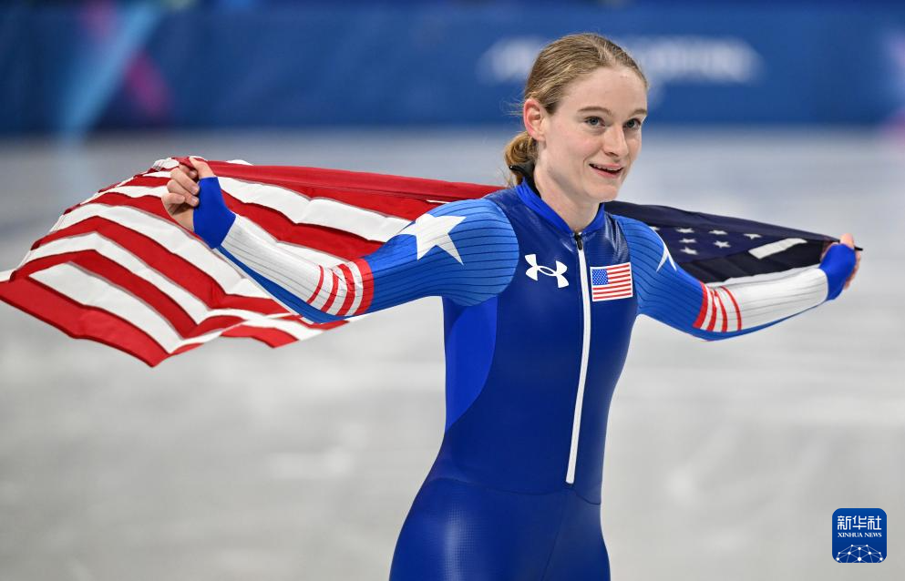 2月20日,季军美国选手科琳娜·斯托达德在比赛后庆祝。