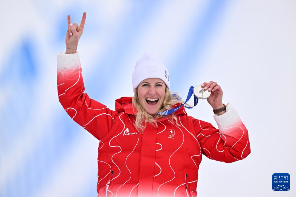 2月20日,亚军瑞士选手范妮·史密斯在颁奖仪式上。