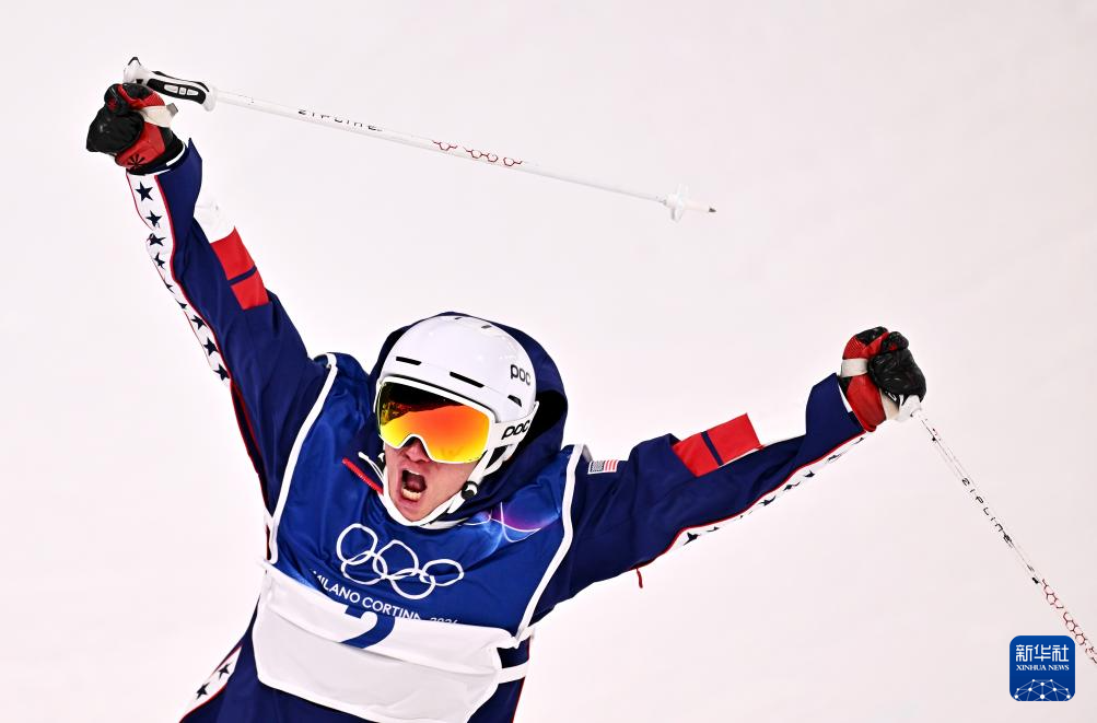 2月20日,美国选手费雷拉在比赛中庆祝。最终他获得冠军。