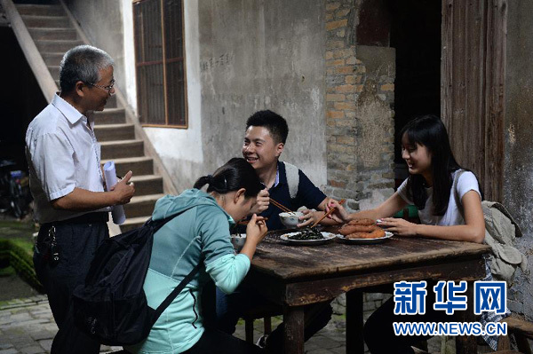 在江西于都縣劉次垣民居內(nèi),三位主播在體驗(yàn)“吃紅軍飯”(9月16日攝)。 10月13日起,新華社為紀(jì)念紅軍長(zhǎng)征勝利80周年推出的系列網(wǎng)絡(luò)直播《紅色追尋——三個(gè)年輕人的長(zhǎng)征路》精編版視頻將在全國(guó)各主要新媒體發(fā)布端和民航、鐵路、公交、戶(hù)外大屏等發(fā)布平臺(tái)上線(xiàn)。新華社記者 萬(wàn)象 攝