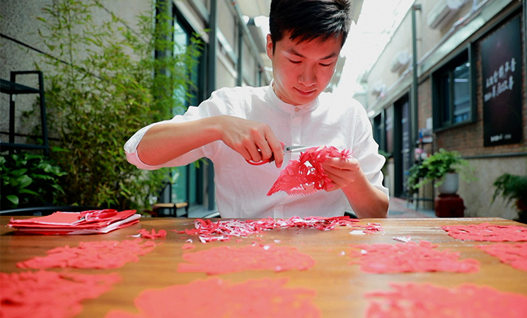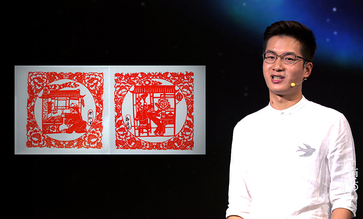作為一個(gè)90后的剪紙傳承人,就要剪一些有新時(shí)代特點(diǎn)的剪紙作品。我擅長的是即興創(chuàng)作、脫稿剪紙,速度就是快。我們會(huì)了那些傳統(tǒng)的圖案之外,還要能夠看到任何的物體,或者別人給我一個(gè)命題就能即時(shí)創(chuàng)作。搞剪紙創(chuàng)作一定要豐富自己的知識(shí)面,這樣腦海中才會(huì)有更多的畫面跟場景。我感覺剪紙是讓我用紙和剪刀在對話,把我的情感通過紙釋放出來。其實(shí)是一種靜修,或者自我的享受。我以后要開展的工作,或許是要承擔(dān)著怎樣讓剪紙?jiān)?0后、10后、20后這些年輕一代的未來人,怎么能認(rèn)識(shí)我們這種傳統(tǒng)藝術(shù),這是我一生要去做的事情。