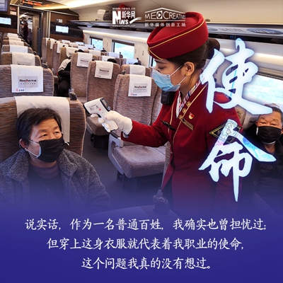 孫碩,北京客運段京廣高鐵車隊的列車長之一。進入高鐵工作8年時間,其中7次大年三十在值乘任務(wù)中度過,沒有陪伴家人。2020年春運,他值乘北京西至福田站的G71/72次復(fù)興號動車組列車,途徑石家莊,鄭州東,武漢,長沙南,廣州南等省會車站。他的母親作為醫(yī)護工作者,曾參與過非典時期的救援任務(wù),他雖不是醫(yī)護人員,但在這個特殊時期服務(wù)于社會,依然感到榮幸。