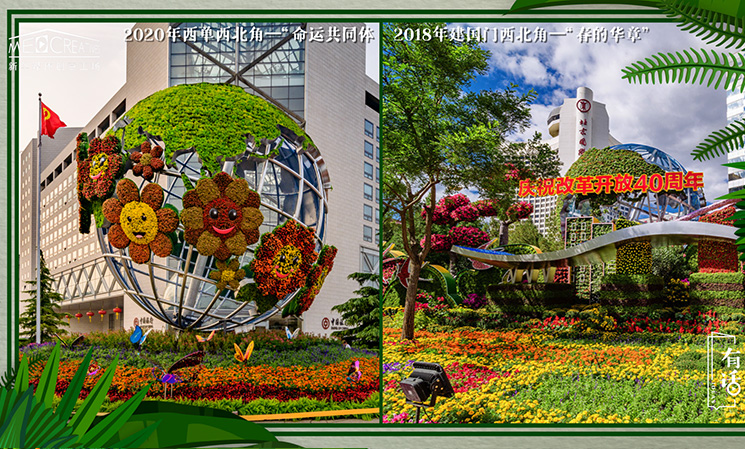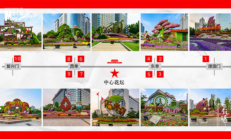 長(zhǎng)安街沿線,從建國(guó)門到復(fù)興門,布置了10組立體花壇,體現(xiàn)決勝全面小康,共襄復(fù)興偉業(yè)的壯闊藍(lán)圖。