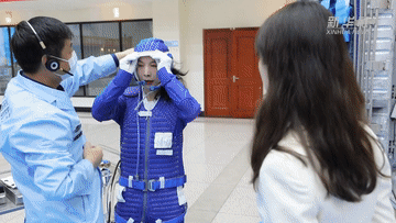 這里是離心機訓練場。離心機由一個八米長的旋轉臂和飛行模擬座艙組成,它所產生的離心力通常用地心引力的倍數表示。例如2G等于兩倍地球引力,大概相當于過山車從最高點急速俯沖到最低點時的壓迫感。普通人最多能承受4G的離心力,而像亞平一樣的航天員則要進行8G的過載訓練。