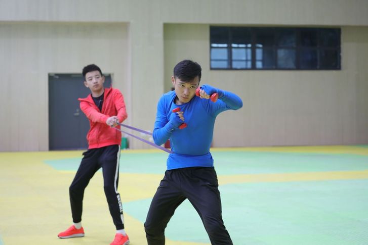 “通過啞鈴鍛煉肩部耐力,腳腕綁沙袋練習移動速度,用杠鈴加強出拳力量和爆發(fā)力,配合手靶全面練習。因為是從零開始,要想拿到成績,必須付出成倍的努力。”趙佳偉說。