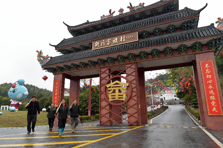 穿過江西省資溪縣烏石鎮(zhèn)新月畬族村牌樓,青山綠樹環(huán)抱村莊,白墻褐瓦的畬寨整齊排列,不時(shí)有炊煙飄出。位于閩贛交界處的新月村,過去曾是武夷山區(qū)閉塞落后的“茅棚村”,如今已成為遠(yuǎn)近聞名的小康村。