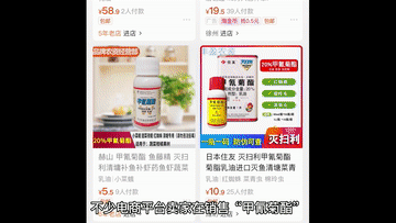 不少電商平臺賣家在銷售“甲氰菊酯”“溴氰菊酯”等產(chǎn)品時,專門標注了“水產(chǎn)養(yǎng)殖戶清塘專用”“迷蝦”“捕蝦”等字樣。但賣家同時又提示:產(chǎn)品對魚蝦有毒,請遠離池塘河流,謹慎使用。