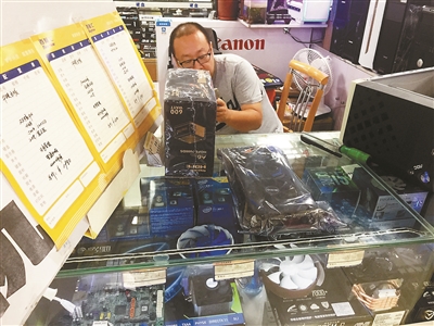 朝外百腦匯一家商戶在展示新到貨的顯卡 圖片來源:北京青年報
