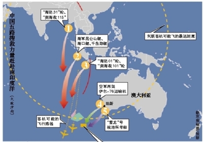 中國外交部發(fā)言人洪磊21日在介紹馬航失聯(lián)客機(jī)搜尋情況時(shí)表示,中澳保持密切溝通和協(xié)調(diào),中方派遣有關(guān)的軍機(jī)和船艦前往相關(guān)海域得到了澳方的支持和配合。他說,交通運(yùn)輸部進(jìn)一步優(yōu)化后續(xù)搜救方案。中國海上搜救中心指示南下編隊(duì)“海巡01”輪、“南海救101”輪繼續(xù)按原定搜尋方案向圣誕島以南部分的我方南部搜尋區(qū)域搜索前進(jìn),并逐漸向發(fā)現(xiàn)疑似失聯(lián)客機(jī)殘骸海域靠近;北上編隊(duì)“海巡31”輪、“南海救115”輪逐漸向我方南部搜尋區(qū)前進(jìn),從北向南開展搜尋工作。目前,海軍昆侖山艦、??谂灐⑶u湖艦等已趕赴南印度洋疑似發(fā)現(xiàn)失聯(lián)客機(jī)殘骸的海域。