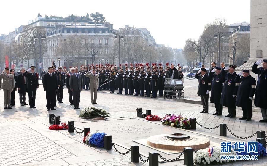 3月27日,國家主席習(xí)近平在巴黎向法國無名烈士墓獻(xiàn)花圈。新華社記者龐興雷攝