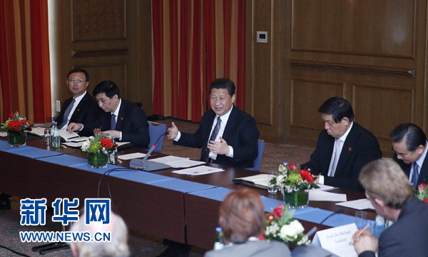 ????新華網(wǎng)柏林3月29日電(記者 徐劍梅 唐志強)國家主席習近平29日在柏林會見德國漢學家、孔子學院教師代表和學習漢語的學生代表,同他們就加強中德語言文化交流進行座談。
