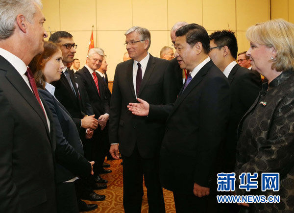 ????招待會(huì)開(kāi)始前,習(xí)近平會(huì)見(jiàn)了中德企業(yè)家代表,勉勵(lì)兩國(guó)企業(yè)抓住機(jī)遇,共同做大中德合作。