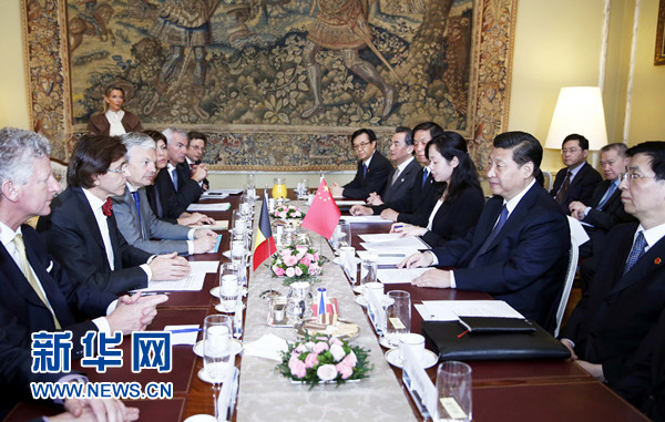 3月31日,國(guó)家主席習(xí)近平在布魯塞爾同比利時(shí)首相迪呂波舉行會(huì)談。 新華社記者 鞠鵬 攝
