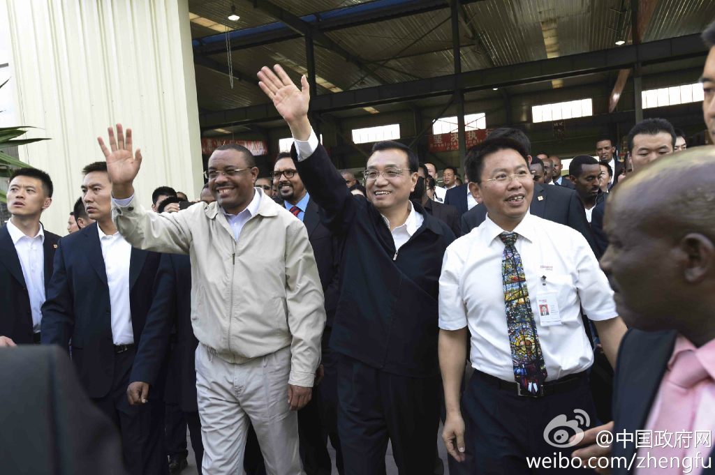 新華網(wǎng)北京5月6日電 據(jù)中國政府網(wǎng)微博報道,5日下午,李克強在埃塞總理陪同下參觀東方工業(yè)園。該園由中方投資興建,目前已為當(dāng)?shù)靥峁?000余個就業(yè)崗位。李克強說,中國愿意把可轉(zhuǎn)移的勞動密集型產(chǎn)業(yè)優(yōu)先轉(zhuǎn)移到非洲,帶動當(dāng)?shù)鼐蜆I(yè),促進發(fā)展,增強非洲自我發(fā)展能力,造福雙方人民。