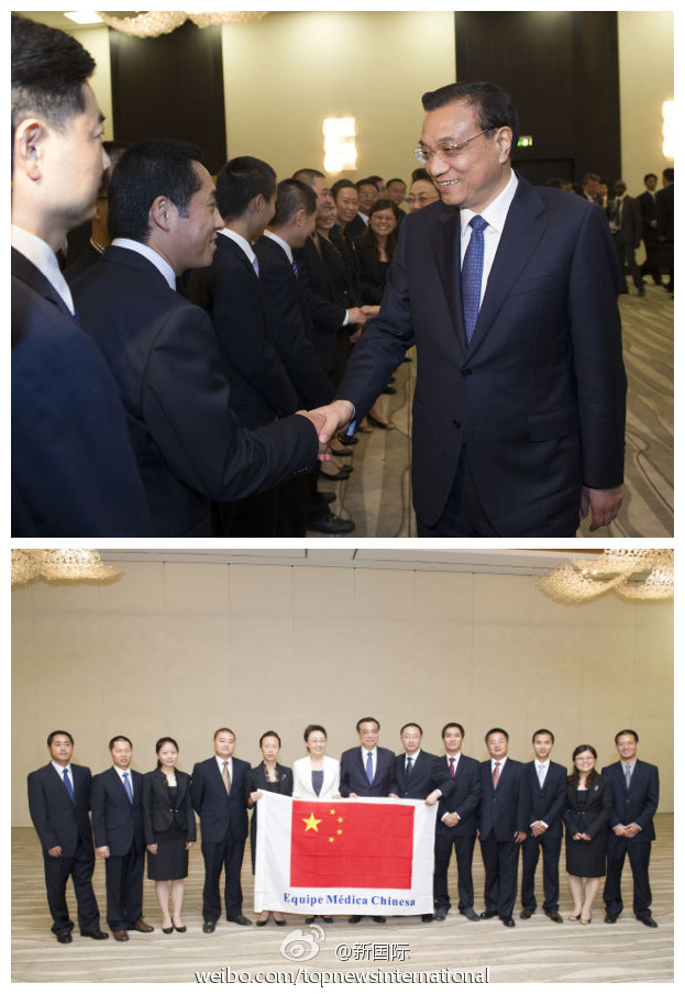 ??? 新華網(wǎng)北京5月9日電 據(jù)新華社“新國(guó)際”微博報(bào)道,8日,李克強(qiáng)總理在羅安達(dá)看望援安醫(yī)療隊(duì)。“有什么困難嗎?”李克強(qiáng)與隊(duì)員一一握手,詢問(wèn)工作情況。得知隊(duì)員最大的困難是語(yǔ)言,李克強(qiáng)鼓勵(lì)大家說(shuō),辦法總比困難多,雖然語(yǔ)言溝通有障礙,但可以用心靈感受對(duì)方疾苦,讓對(duì)方切身感受到中國(guó)人民的美好情誼。?