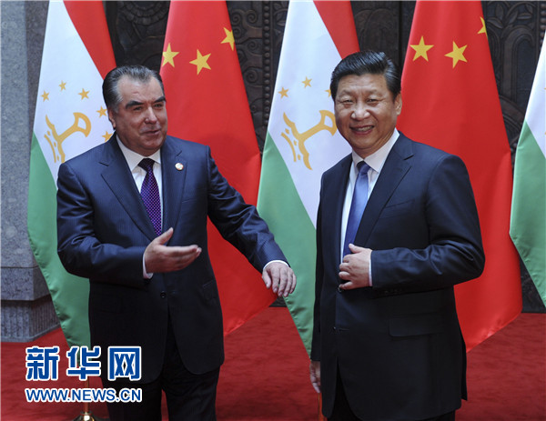 ????習近平表示,中方始終視塔吉克斯坦為好鄰居、好朋友、好伙伴,支持塔吉克斯坦維護國家穩(wěn)定、促進經(jīng)濟發(fā)展、提高人民生活水平。去年中塔建立戰(zhàn)略伙伴關(guān)系以來,兩國關(guān)系發(fā)展進入新階段,各領(lǐng)域合作勢頭很好。雙方要加緊制定《中塔2015-2020年戰(zhàn)略伙伴關(guān)系合作綱要》,如期推進中國-中亞天然氣管道工程以及塔方輸變電線路改造、交通和邊境口岸基礎設施建設、工業(yè)園、農(nóng)業(yè)技術(shù)示范園區(qū)等合作項目,促進文化、教育、旅游合作,加強執(zhí)法安全和防務合作,共同打擊“三股勢力”、販毒和跨國犯罪。中方全力支持和配合塔方辦好今年9月舉行的上海合作組織杜尚別峰會,推動本組織向團結(jié)更緊密、合作更務實、行動更有效的方向發(fā)展。