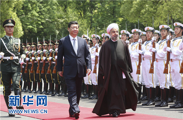 ????習近平表示,中伊傳統(tǒng)友好,合作潛力巨大。中方高度重視發(fā)展兩國關系,愿同伊方共同努力,將中伊關系提高到新水平。雙方要保持高層接觸和往來,推動兩國政府、議會、地方、民間交往,深化了解和互信,擴大貿(mào)易往來,穩(wěn)步推進油氣、石化合作。歷史上,中伊兩國人民通過絲綢之路開展友好交往。中方歡迎伊方積極參與絲綢之路經(jīng)濟帶和21世紀海上絲綢之路建設,帶動基礎設施建設等領域合作,啟動高鐵、經(jīng)濟園區(qū)等項目。雙方要加強安全合作,共同打擊恐怖主義、毒品和跨國犯罪。中伊都是文明古國,要加強人文交流,盡早互設文化中心,促進旅游合作。