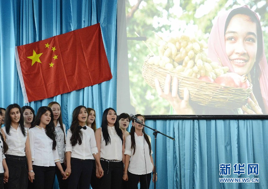6月9日,學(xué)生代表在烏茲別克斯坦首都塔什干的烏世界語言大學(xué)禮堂表演節(jié)目。