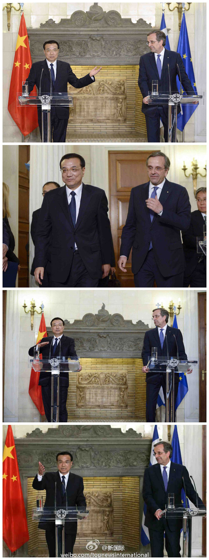 ??? 新華網(wǎng)北京6月20日電 據(jù)新華社“新國(guó)際”微博報(bào)道,19日,李克強(qiáng)與希臘總理共見記者談及中希關(guān)系時(shí)說(shuō),作為東西方文明兩大古國(guó),都對(duì)人類文明做出過特殊貢獻(xiàn)。兩國(guó)人民又有著深厚情誼。希臘為中國(guó)從利比亞撤僑提供了寶貴幫助;中國(guó)為希臘克服主權(quán)債務(wù)危機(jī)及時(shí)施以援手。中希兩國(guó)關(guān)系義字當(dāng)頭、互利雙贏。