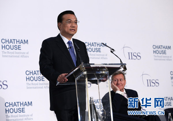 ??? 6月18日,國務(wù)院總理李克強(qiáng)在倫敦金融城市長官邸面向英國皇家國際問題研究所和國際戰(zhàn)略研究所兩大智庫發(fā)表題為《共建包容發(fā)展的美好世界》的演講。新華社記者 龐興雷 攝