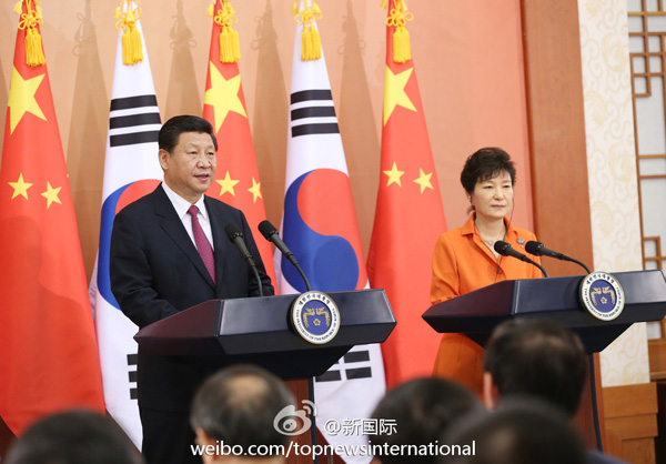 ????新華網(wǎng)北京7月4日電 據(jù)新華社“新國際”微博報道,習近平主席3日在同韓國總統(tǒng)樸槿惠會談后共見記者時說,我和樸槿惠總統(tǒng)同意,兩國將加大中韓自貿(mào)區(qū)談判力度,爭取在年底前結束談判,為到2015年雙邊貿(mào)易額達到3000億美元的目標創(chuàng)造更好條件。