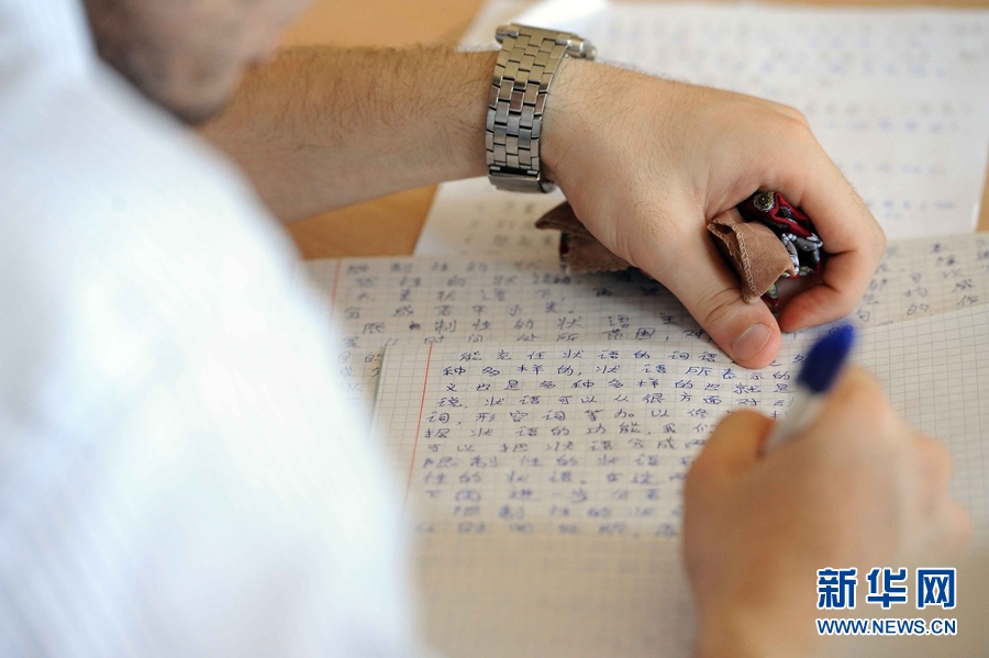 ??? 6月25日,烏茲別克斯坦首都塔什干,烏國立世界語言大學(xué)教室,70歲的董富華在向三年級學(xué)生上漢語課。新華網(wǎng)記者 沙達(dá)提攝。
