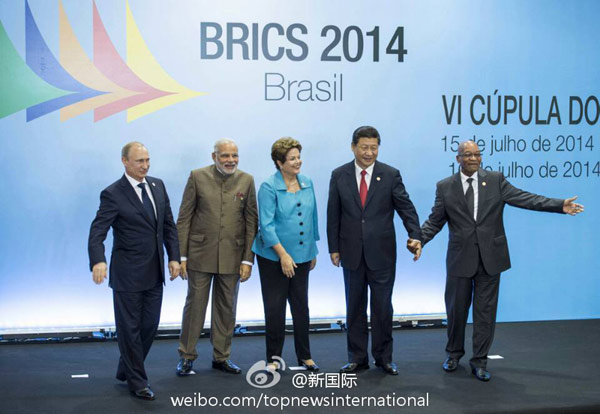 ???? 新華網(wǎng)北京7月16日電 據(jù)新華社“新國(guó)際”微博報(bào)道,習(xí)近平在出席金磚國(guó)家領(lǐng)導(dǎo)人第六次會(huì)晤時(shí)提出,要發(fā)揚(yáng)金磚國(guó)家獨(dú)特的“開放、包容、合作、共贏”的合作伙伴精神,要堅(jiān)定不移推動(dòng)經(jīng)濟(jì)可持續(xù)增長(zhǎng),堅(jiān)定不移形成全方位經(jīng)濟(jì)合作,堅(jiān)定不移塑造有利外部發(fā)展環(huán)境,堅(jiān)定不移提高道義感召力。