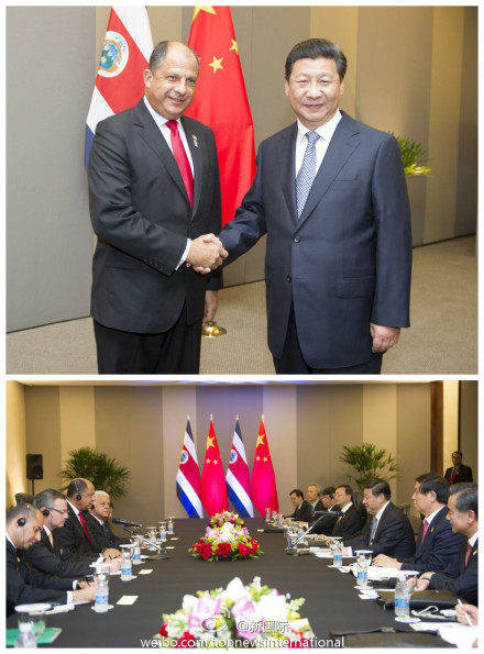 ??? 新華網(wǎng)北京7月17日電 據(jù)新華社“新國(guó)際”微博報(bào)道,習(xí)近平主席16日會(huì)見(jiàn)哥斯達(dá)黎加總統(tǒng)索利斯時(shí)說(shuō),中哥關(guān)系正如一棵茁壯成長(zhǎng)的美洲象耳樹(shù)。中方愿繼續(xù)同哥方一道,把政治互信的根扎深,把互利合作的干養(yǎng)壯,使人文交流的葉繁茂,使中哥關(guān)系這棵大樹(shù)果實(shí)累累。(攝影:謝環(huán)馳)?