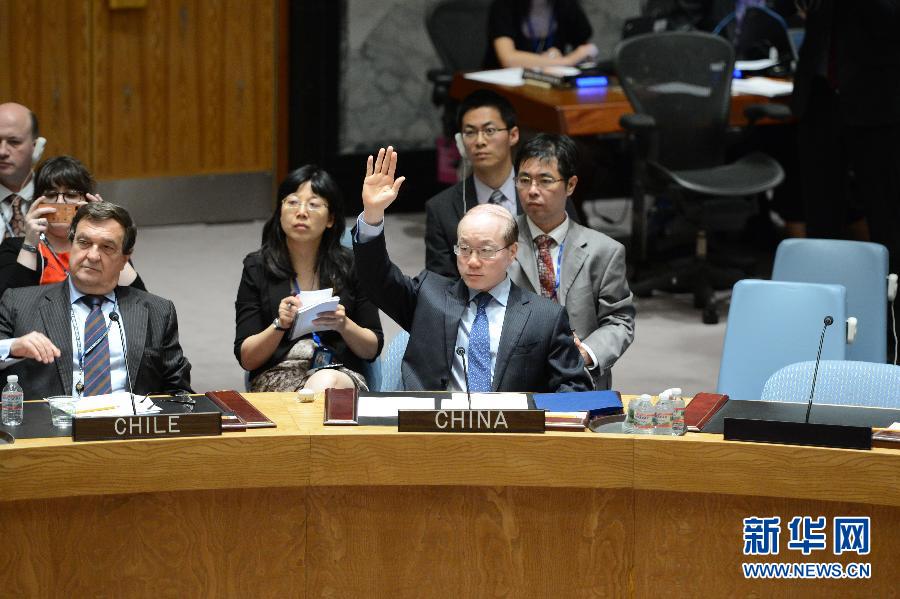 ??? 7月21日,在紐約聯(lián)合國總部,中國常駐聯(lián)合國代表劉結(jié)一(中)參加安理會(huì)就決議草案進(jìn)行的表決。聯(lián)合國安理會(huì)21日通過決議,強(qiáng)烈譴責(zé)馬來西亞航空公司MH17航班墜毀事件,同時(shí)敦促各方充分配合對(duì)這一事件的國際調(diào)查。新華社記者牛曉雷攝