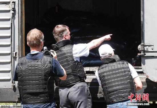 當(dāng)?shù)貢r(shí)間2014年7月20日,烏克蘭頓涅茨克Torez,馬航墜機(jī)遇難乘客遺體被裝上列車?yán)洳剀噹麑⒈贿\(yùn)走。載有部分遺體的火車從距空難現(xiàn)場(chǎng)不遠(yuǎn)的烏克蘭托列茲市出發(fā),前往頓涅茨克市?;疖囯x站前,身處空難現(xiàn)場(chǎng)的歐洲安全與合作組織(歐安組織)代表檢查了運(yùn)載遺體的5節(jié)冷藏車廂。