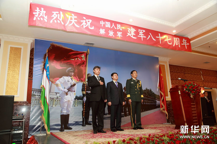 ????中國駐烏茲別克斯坦使館舉行建軍節(jié)招待會 (新華社發(fā) 記者沙達(dá)提)