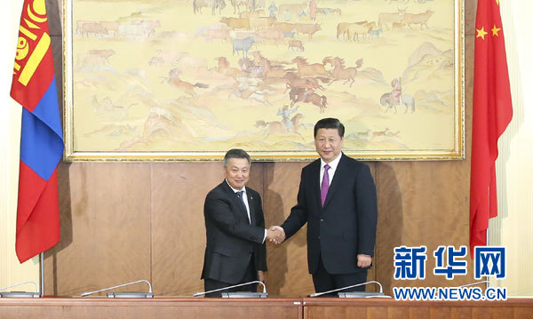 ????習(xí)近平表示,昨天,我同額勒貝格道爾吉總統(tǒng)談得很好,取得很多務(wù)實成果。我相信,只要雙方共同努力,中蒙務(wù)實合作就能夠邁開大步,給兩國人民帶來更多實實在在的利益。希望蒙古國國家大呼拉爾積極支持兩國合作,為兩國合作提供透明、穩(wěn)定、良好的法律環(huán)境。