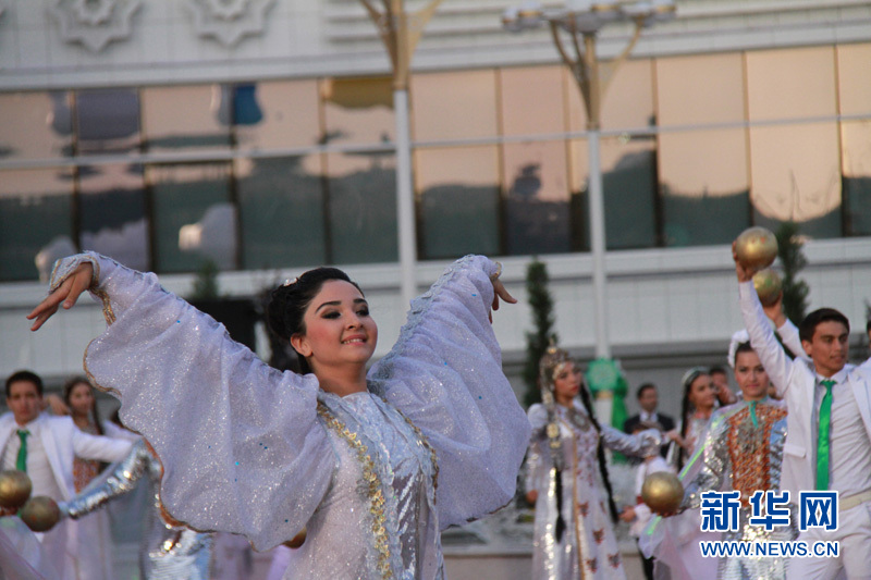 身著節(jié)日盛裝的土庫(kù)曼斯坦美女在跳舞 記者 盧敬利攝