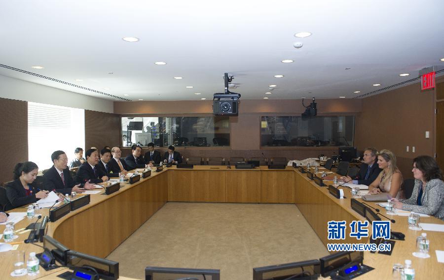 9月23日,出席聯(lián)合國氣候峰會的國家主席習(xí)近平特使、國務(wù)院副總理張高麗在紐約聯(lián)合國總部會見荷蘭王后馬克西瑪。 新華社記者 王曄 攝