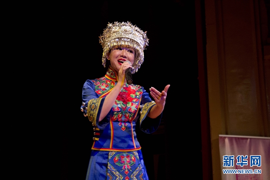 來自中南民族大學(xué)的演員在臺上表演。新華網(wǎng)發(fā) Xesco攝