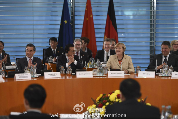????新華網(wǎng)北京10月10日電 據(jù)新華社“新國際”微博報(bào)道,“Happy Birthday!”在第三輪中德政府磋商會(huì)上,德國總理默克爾開場先向中方農(nóng)業(yè)部長祝福生日!她說:雖然你不能和家人一起過,但我們會(huì)讓你過個(gè)愉快的生日。李克強(qiáng)總理提議大家舉水杯為這特別的生日送上祝福,還風(fēng)趣地說祝福農(nóng)業(yè)部長,意味著有保障糧食安全的基礎(chǔ)。