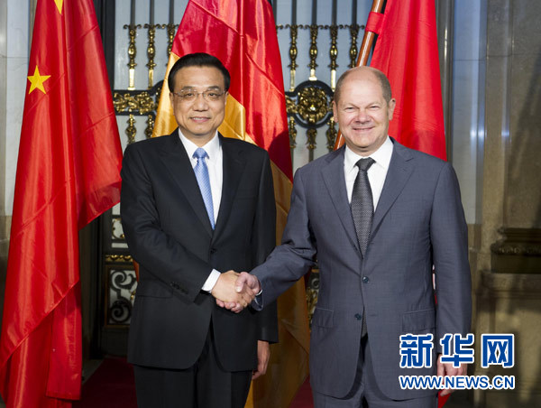 ????李克強(qiáng)表示,漢堡與中國(guó)交往歷史悠久,不僅是中德貿(mào)易的領(lǐng)頭羊,也是中國(guó)企業(yè)落戶最多的歐洲城市。昨天,我與默克爾總理共同主持了第三輪中德政府磋商,雙方發(fā)表《中德合作行動(dòng)綱要》,全面系統(tǒng)規(guī)劃了兩國(guó)各領(lǐng)域中長(zhǎng)期合作。希望漢堡在落實(shí)過程中走在前列,與中方在自由貿(mào)易、鐵路運(yùn)輸、新能源、清潔能源、媒體等方面加強(qiáng)合作。中國(guó)政府將繼續(xù)鼓勵(lì)有實(shí)力的中國(guó)企業(yè)赴漢堡投資興業(yè),希望漢堡市為此提供便利。