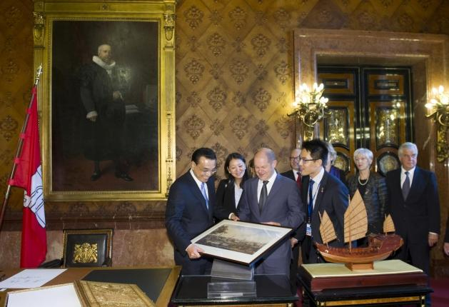 “這是一艘明代的商船,它曾到過非洲的東海岸,可惜沒能來到漢堡,不過它眺望過漢堡,現(xiàn)在終于來到漢堡了,”克強(qiáng)總理說。肖爾茨贈(zèng)給克強(qiáng)總理的是一幅描繪漢堡市中心風(fēng)景的圖畫。
