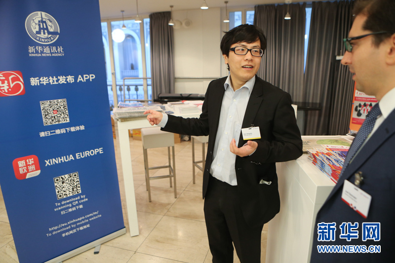 ??? 10月11日,在德國漢堡舉行的中歐論壇漢堡峰會上,作為此次峰會的媒體合作伙伴,新華社的工作人員在會議現(xiàn)場推介新華社發(fā)布和歐洲發(fā)布APP。中歐論壇漢堡峰會第六屆會議11日在德國漢堡閉幕。本屆峰會以“中國與歐洲相遇”為主題。來自中歐政治、經(jīng)濟(jì)和學(xué)術(shù)界的500多位代表聚集在一起,探討中歐經(jīng)貿(mào)合作未來趨勢、中國經(jīng)濟(jì)的綠色發(fā)展等重要議題。新華社記者張帆攝