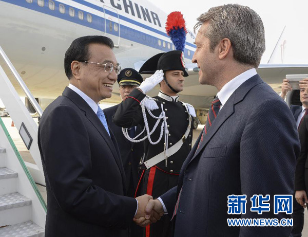 新華網(wǎng)快訊:國務(wù)院總理李克強當(dāng)?shù)貢r間14日下午抵達(dá)羅馬,開始對意大利進(jìn)行正式訪問。