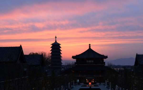 清晨6時(shí)40分許,朝霞映紅了北京懷柔雁棲湖東方的天空。
