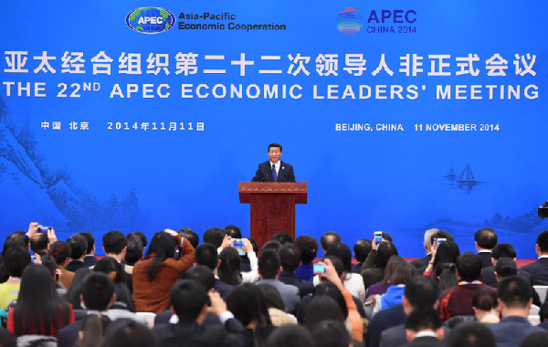 16時(shí)許,APEC領(lǐng)導(dǎo)人非正式會(huì)議圓滿結(jié)束后,習(xí)主席出席記者會(huì)并講話。