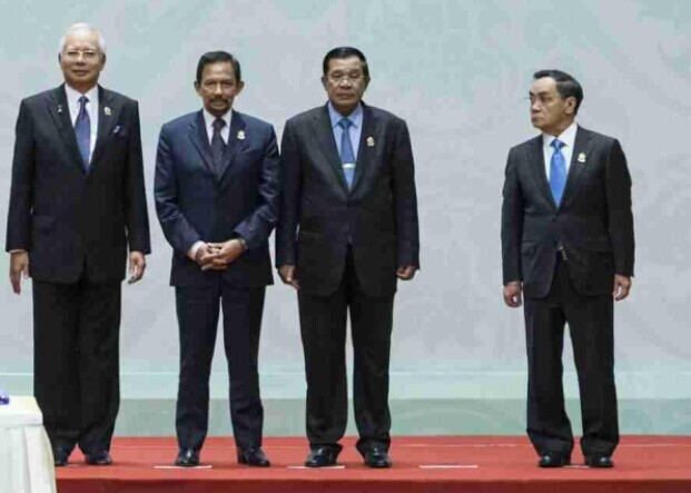 (11月13日,出席10+3會議的領(lǐng)導(dǎo)人合影,中間空出一個位子。)