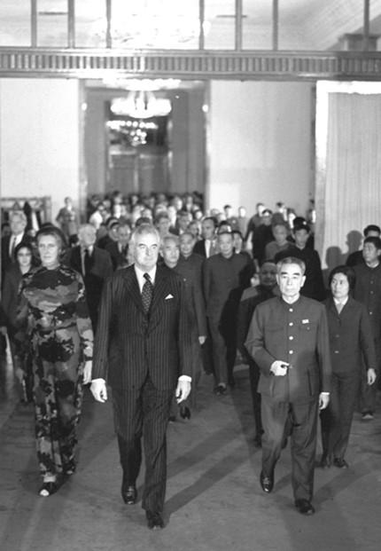 ????惠特拉姆被澳大利亞人譽(yù)為“澳中建交之父”。幾乎與基辛格博士秘密訪(fǎng)華同時(shí),惠特拉姆1971年7月率澳大利亞工黨代表團(tuán)訪(fǎng)華?;萏乩反文贲A得選舉并出任澳大利亞總理后,立即推動(dòng)了澳大利亞與新中國(guó)正式建交,使澳大利亞成為較早與新中國(guó)建交的西方國(guó)家之一。