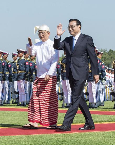11月14日,緬甸總統(tǒng)吳登盛為李克強(qiáng)總理舉行隆重歡迎儀式。