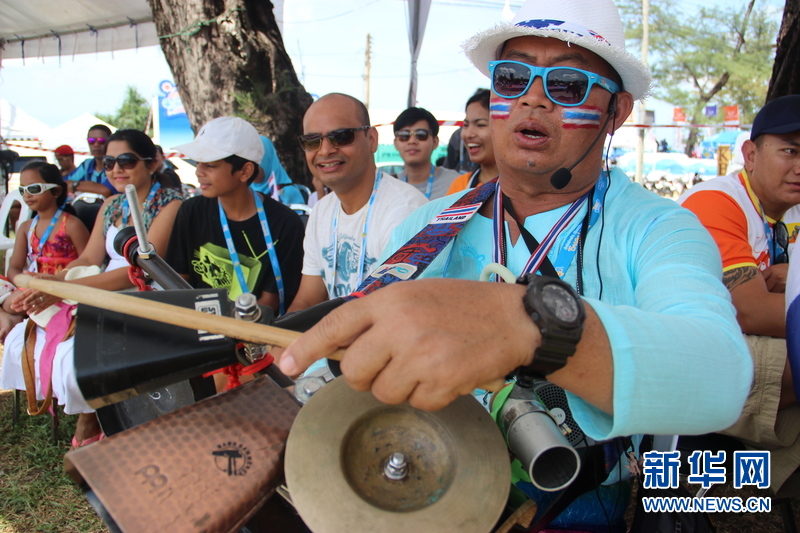 ??? 11月16日,泰國(guó)民眾為泰國(guó)運(yùn)動(dòng)健兒加油。中國(guó)體育代表團(tuán)16日在泰國(guó)普吉舉行的第四屆亞洲沙灘運(yùn)動(dòng)會(huì)上勇奪2枚金牌和2枚銅牌。當(dāng)天比賽全部結(jié)束時(shí),中國(guó)隊(duì)以3金2銀5銅的成績(jī)暫列獎(jiǎng)牌榜第五,東道主泰國(guó)隊(duì)以9金11銀12銅的成績(jī)暫列金牌榜和獎(jiǎng)牌榜第一。新華社發(fā)(塔納攝)