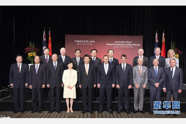 ????新華網(wǎng)悉尼11月19日電(記者魏建華 張小軍)國(guó)家主席習(xí)近平19日在悉尼與澳大利亞總理阿博特共同出席首屆中澳省州負(fù)責(zé)人論壇。