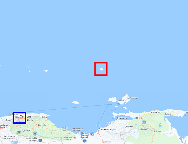 ????紅框里就是布蘭基亞(Isla La Blanquilla),藍框里是委內(nèi)瑞拉首都加拉加斯。夠遠的吧?小島距離加拉加斯182公里,是著名的潛水勝地。島上覆蓋有白色沙灘,島名中的Blanquilla即來自此沙灘。岸上雖然沙灘一片雪白,但是海中卻滿布黑珊瑚。小島面積64.53平方公里,上面有仙人掌、鬣蜥、野驢和山羊。