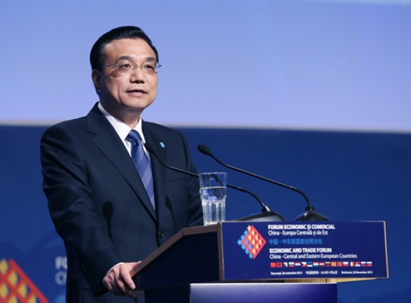 ????圖為2013年11月26日,國(guó)務(wù)院總理李克強(qiáng)出席第三屆中國(guó)—中東歐國(guó)家經(jīng)貿(mào)論壇并致辭。當(dāng)天,李克強(qiáng)在布加勒斯特與羅馬尼亞等13個(gè)中東歐國(guó)家總理共同出席第三屆中國(guó)—中東歐國(guó)家經(jīng)貿(mào)論壇并致辭。 新華社記者姚大偉攝